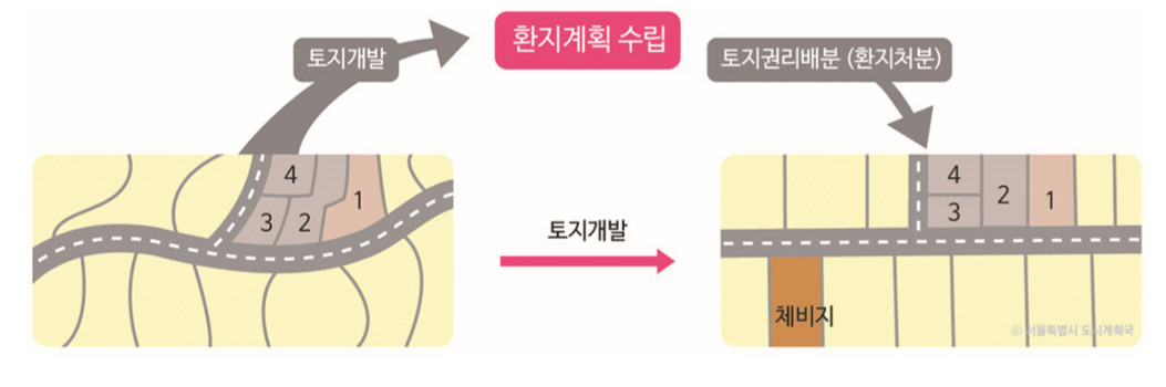 [정의]예전 토지구획정리사업이나 환지방식의 도시개발사업 시 대상토지의 위치, 지목, 면적, 이용도, 기타 여러 사항을 고려하여 사업시행 후 소유주에게 재배분하는 택지, 혹은 이에 따른 행위를 말한다.[용어설명]구 「토지구획정리사업법」에 의한 토지구획정리사업(2000.8.3 폐지)이 환지(還地)방식을 통해 추진되...