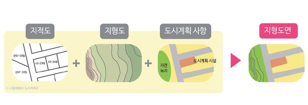 [정의]지적이 표시된 지형도에 지역·지구 등 도시계획 사항을 명시한 도면을 말한다. [용어설명]지형도면은 지역·지구 등의 결정 사항과 개별필지와의 사실관계를 확인하기 위하여 작성하며, 이를 통해 지역·지구 등의 지정 및 운영의 투명화와 개인의 사유재산에 대한 제한을 알리는데 그 목적...
