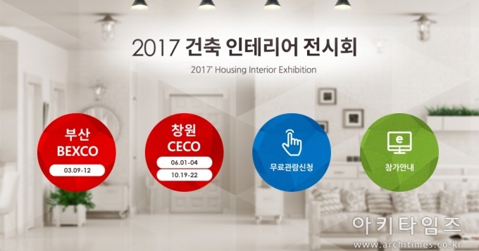 ■ 기간2017년 10월 19일(목) ~ 10월 22일(일) ■ 홈페이지http://livingexpo.co.kr/main.php ■ 장소창원 세코(CECO) ■ 전시규모80개 업체 200부스 ■ 주최(주)메세코리아 ■ 출품대상품목- 건물 내,외장재/바닥재/구조재- 급수/욕실위생 설비재- 도장/방수/단열재- 창호재- 냉...