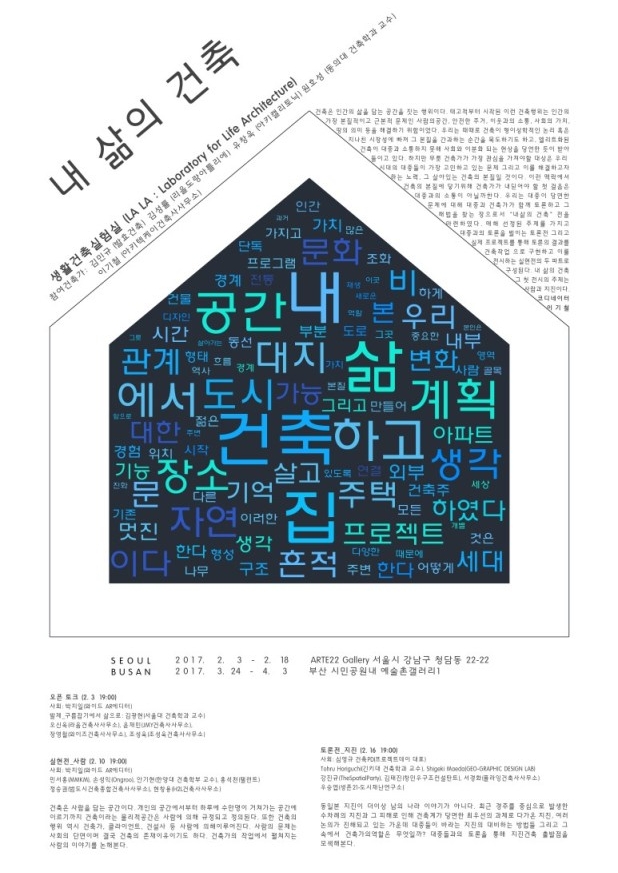 부산의 젊은 건축가들에 의해 결성된 생활건축실험실 라라(LALA:LAboratory for dailyLife Architecture)에 의해 기획된 ‘내삶의 건축’전시는 사람(대중)을 주제로 하여 지진과 같은 자연재해, 인공적인 환경재해에 대비한 건축담론을 화두로 한 전시&좌담전으로 구성돼있다. ‘내 삶의 건축’전시회...
