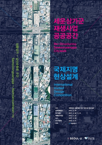 공모 제목세운상가군 재생사업 공공공간 국제지명현상설계(삼풍상가 - 남산순환로 구간) 대상지 소개서울 역사도심의 중심에 위치하고 있는 세운상가군은 종로에서 퇴계로까지 약 1km에 걸쳐 총 7개의 상가로 구성되어 있으며 행정구역상 종로구와 중구에 소재하고 있다. 세운상가군의 북측에는 ...
