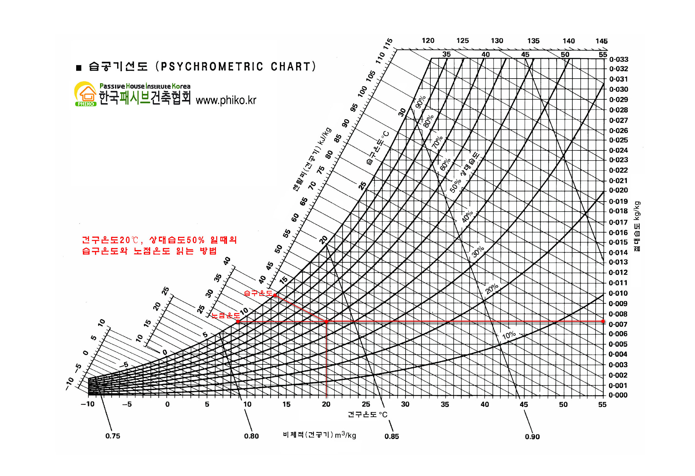 한국패시브건축협회에서 배포하고있는 습공기선도입니다.